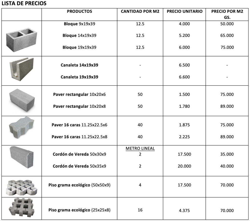 NUEVO PRECIO POR M2 75.000Gs. (Octubre 2020)